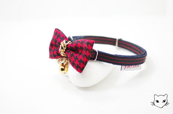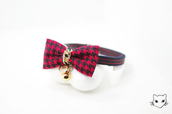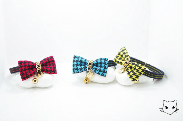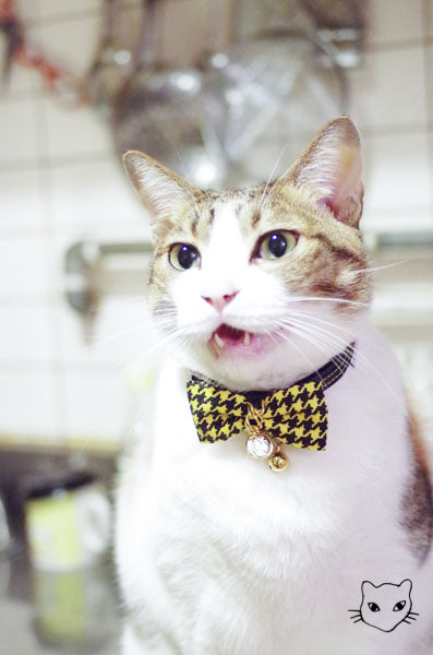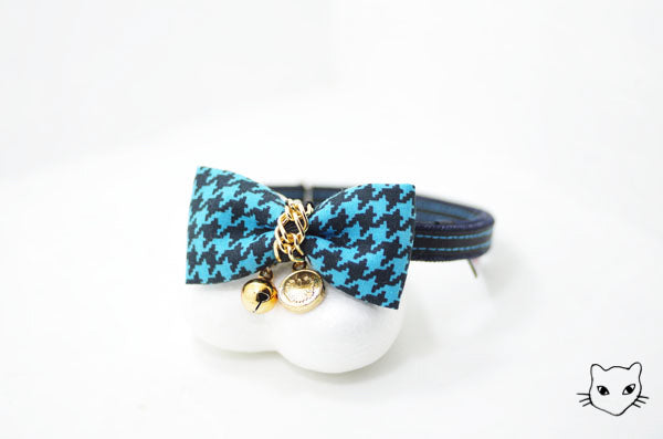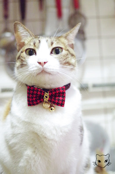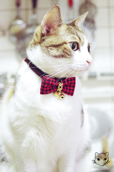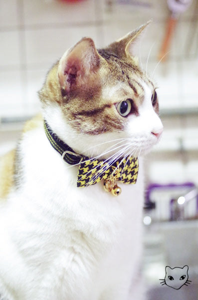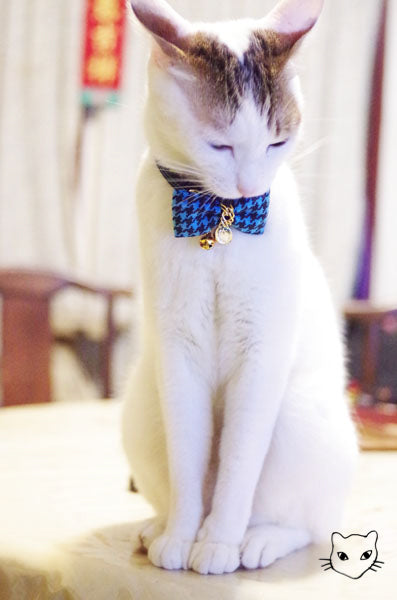 標誌的金鍊千鳥英倫經典款式,金色吊牌和細緻鏈條與各色千鳥紋路百搭任何喵喵的自信眼神!獨家彈性安心項圈設計,彈性繩受力自動變長好鬆脫,緊緻造型之外,更讓安心滿分,活動花釦巧妙的重心配置,讓貓咪帶著跑跳玩耍後只要甩甩頭,花釦便會自然回到胸前,依然優雅。為貓咪量身定製的大小合適,美觀為上,更重要的是貓咪整天的舒適體驗。全項圈高品質 100% 手工裁切縫製,嚴選台灣優質緞帶,舒適的可調長度項圈,自由調整 20 ~ 50 cm,可一路陪伴各種大中小型貓的手工貓項圈。