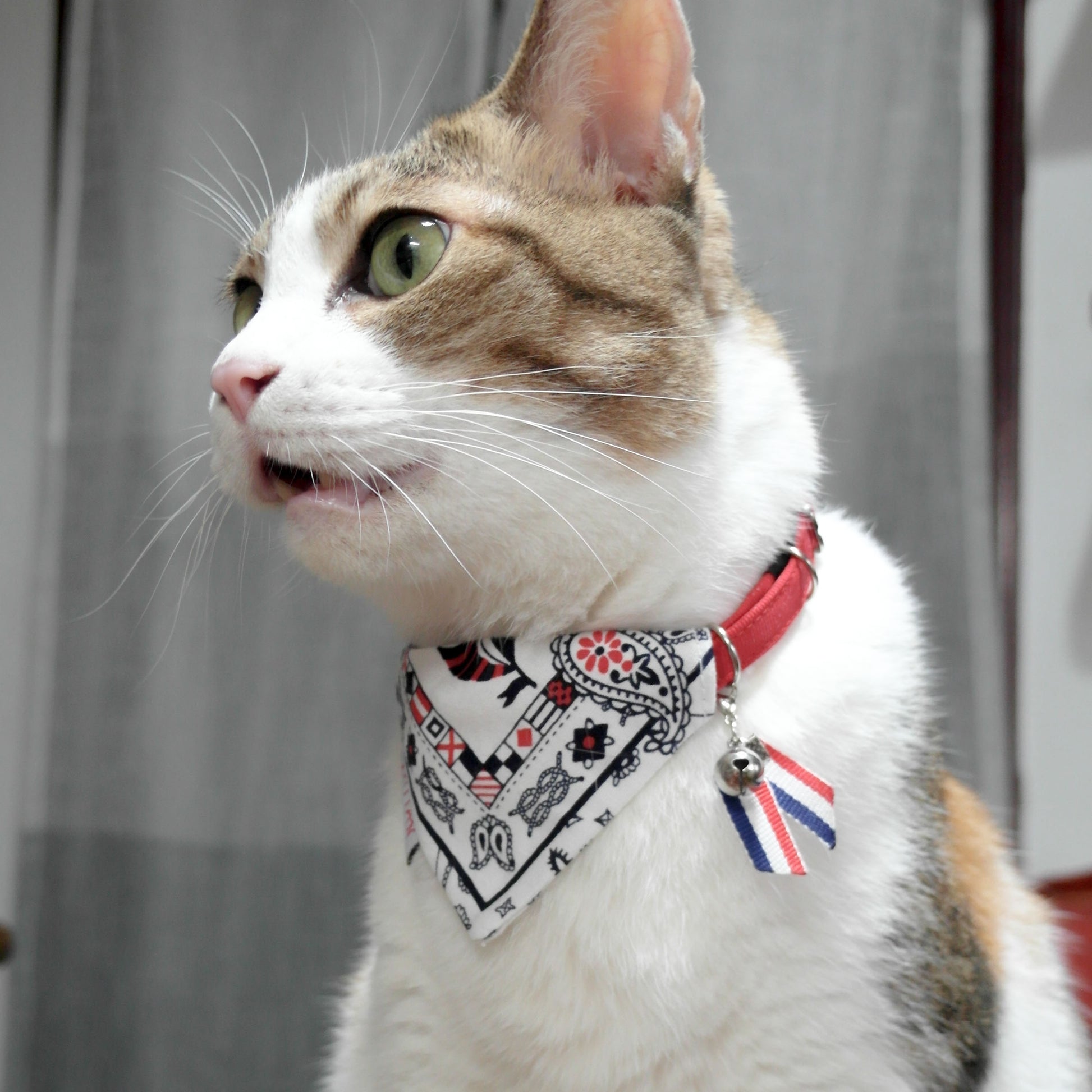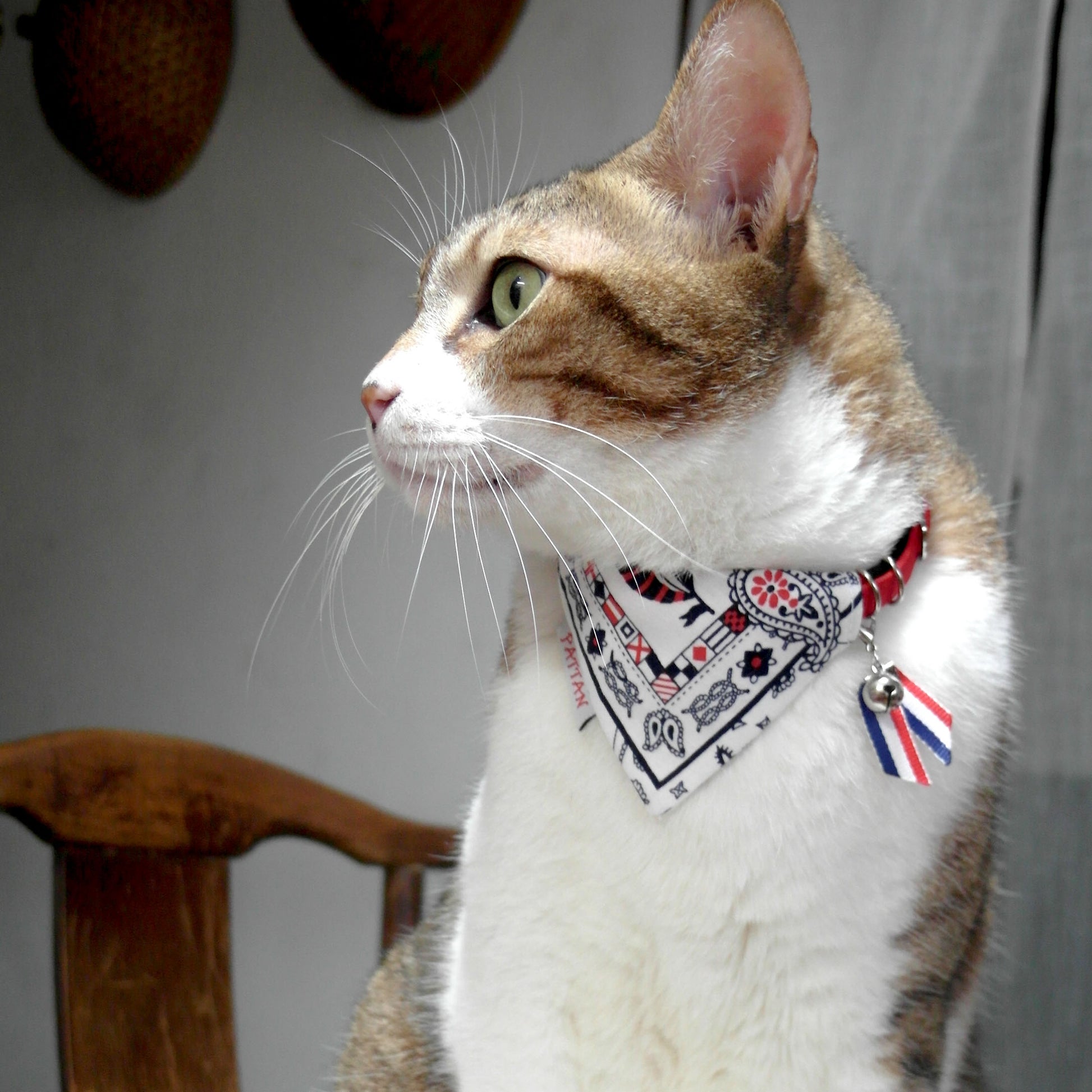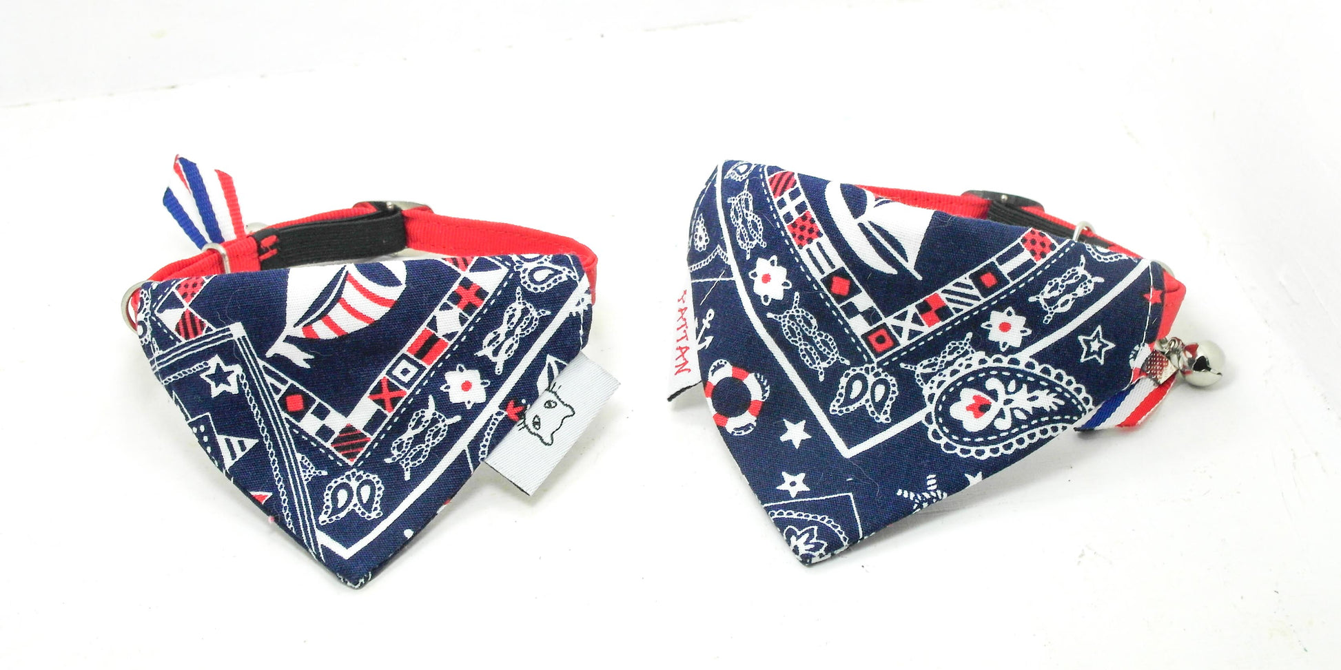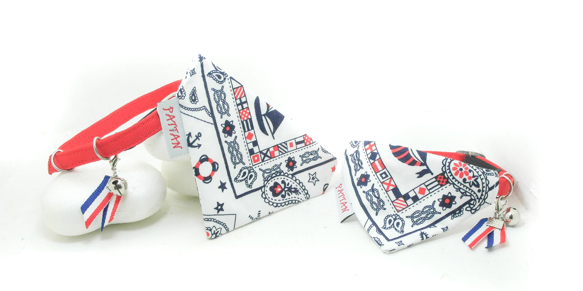 新版輕量帆船三角巾,我們將熱賣的帆船圖案更加升級,提供三種顏色和兩款尺寸,白、紅、藍色的三角巾均有 S 號 6 x 9 cm 與 M 號 7.5 x 11 cm。並且相圈的活動鈴鐺也重新設計,搭配上紅藍白三色緞帶短墜,獨家彈性安心項圈設計,彈性繩受力自動變長好鬆脫,緊緻造型之外,更讓安心滿分。為貓咪量身定製的大小合適,美觀為上,更重要的是貓咪整天的舒適體驗。全項圈高品質 100% 手工裁切縫製,嚴選台灣優質緞帶,舒適的輕量可調長度項圈,自由調整 20 ~ 50 cm,可一路陪伴各種大中小型貓的手工貓項圈。