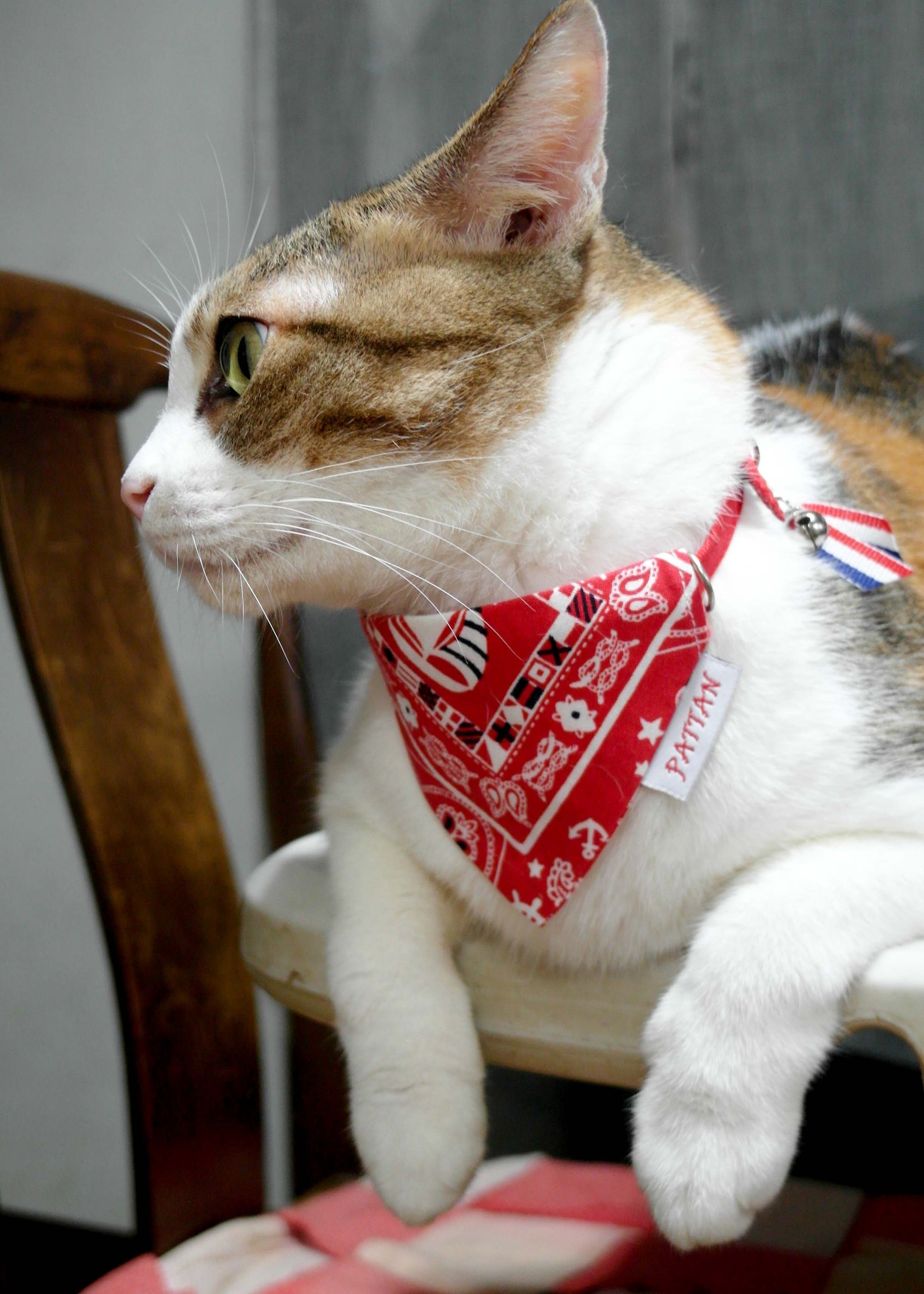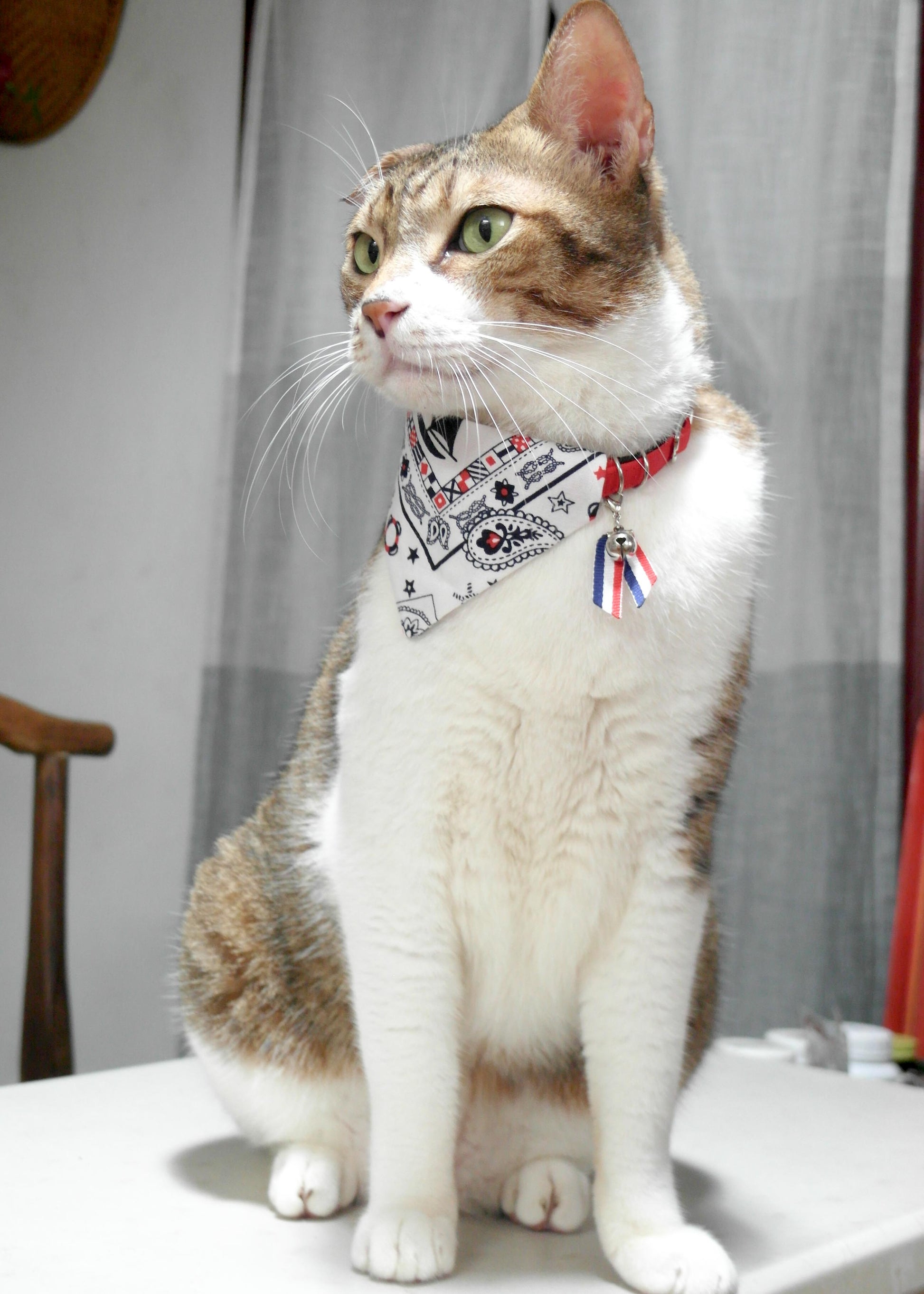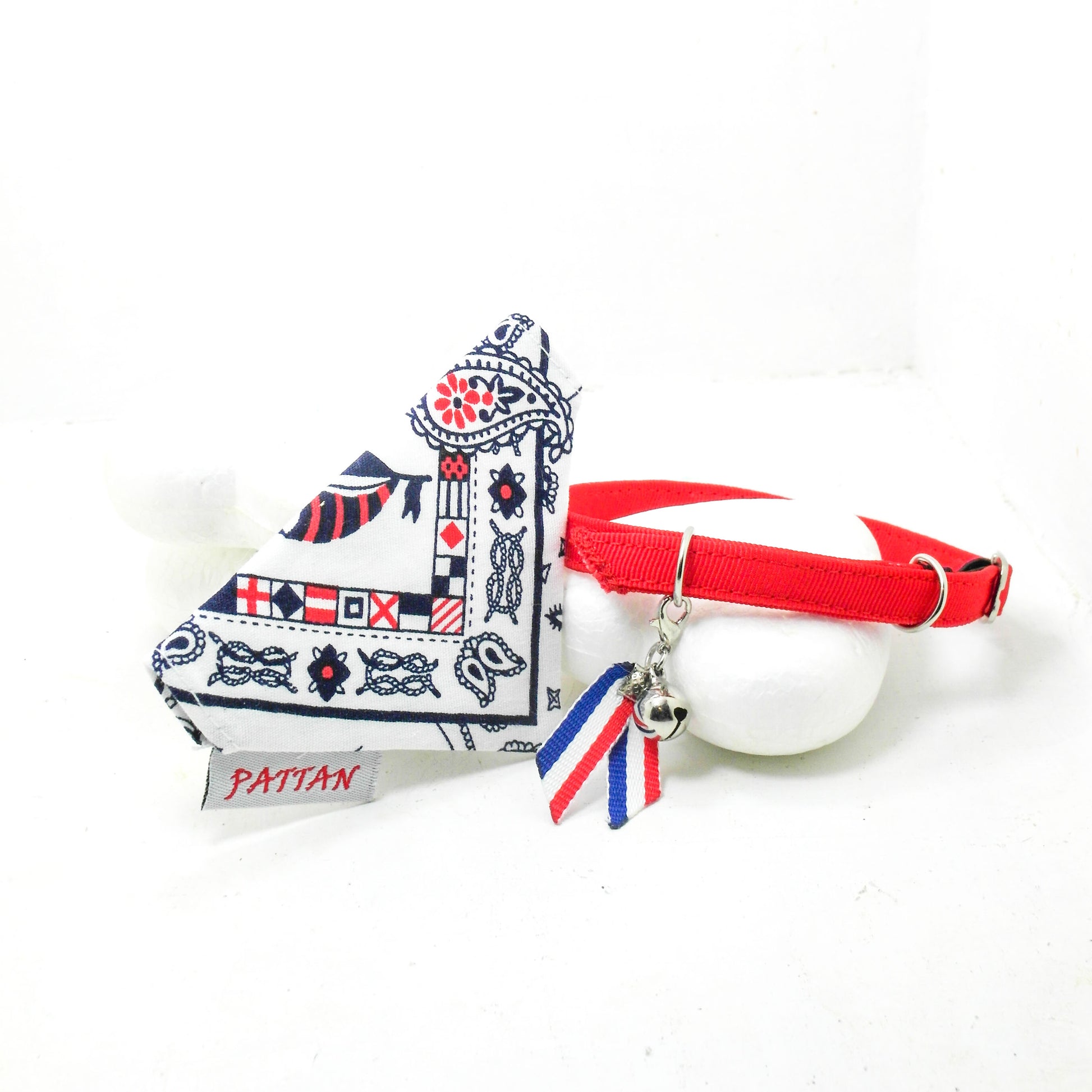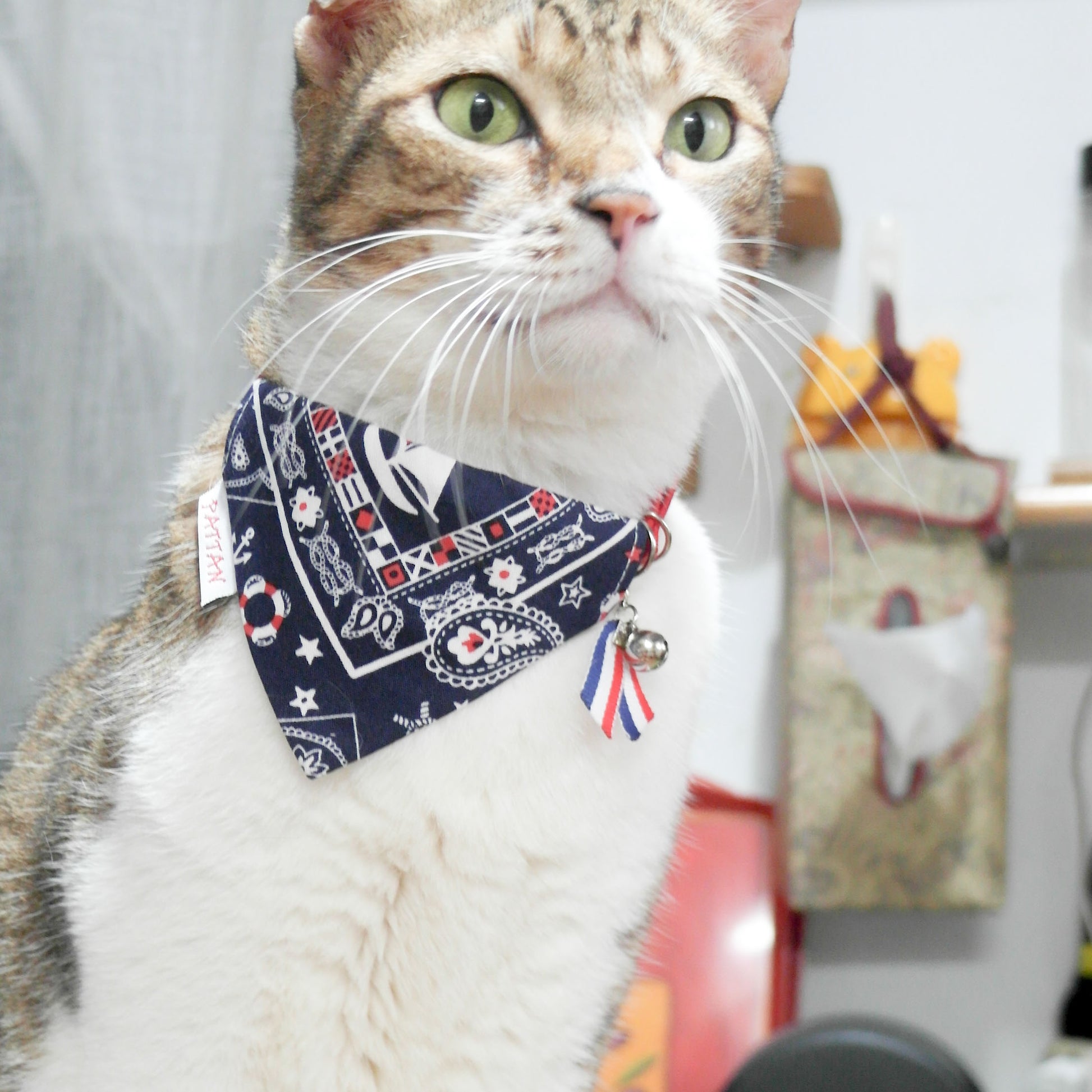 新版輕量帆船三角巾,我們將熱賣的帆船圖案更加升級,提供三種顏色和兩款尺寸,白、紅、藍色的三角巾均有 S 號 6 x 9 cm 與 M 號 7.5 x 11 cm。並且相圈的活動鈴鐺也重新設計,搭配上紅藍白三色緞帶短墜,獨家彈性安心項圈設計,彈性繩受力自動變長好鬆脫,緊緻造型之外,更讓安心滿分。為貓咪量身定製的大小合適,美觀為上,更重要的是貓咪整天的舒適體驗。全項圈高品質 100% 手工裁切縫製,嚴選台灣優質緞帶,舒適的輕量可調長度項圈,自由調整 20 ~ 50 cm,可一路陪伴各種大中小型貓的手工貓項圈。