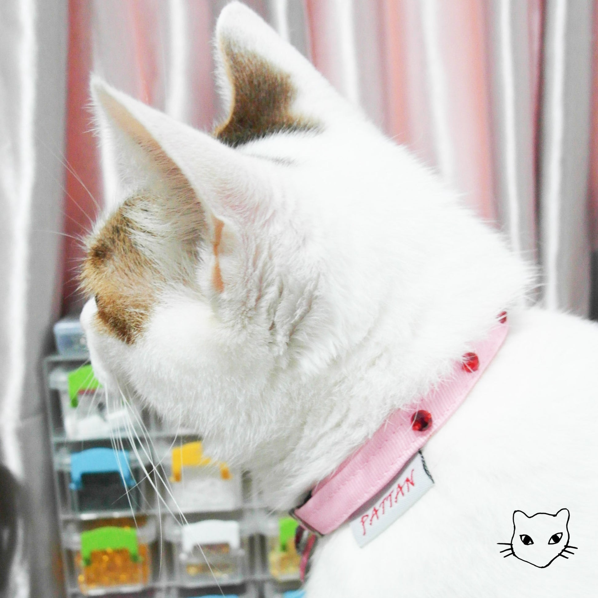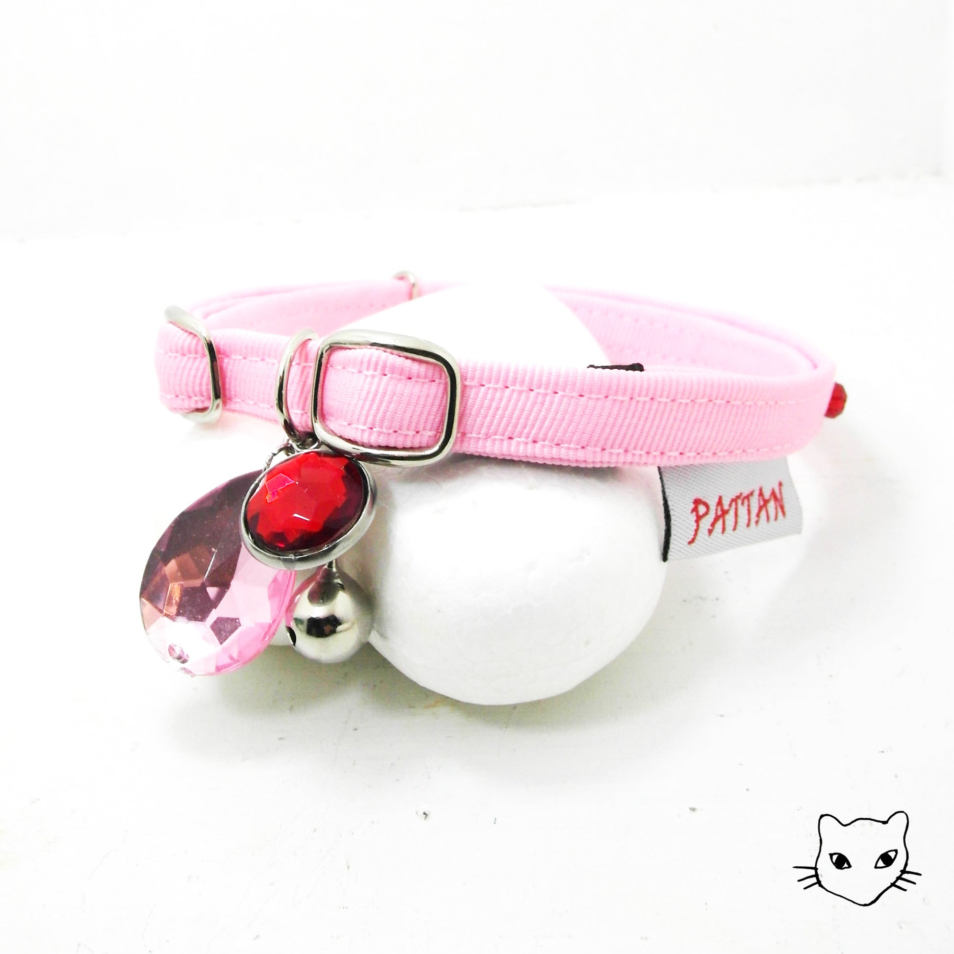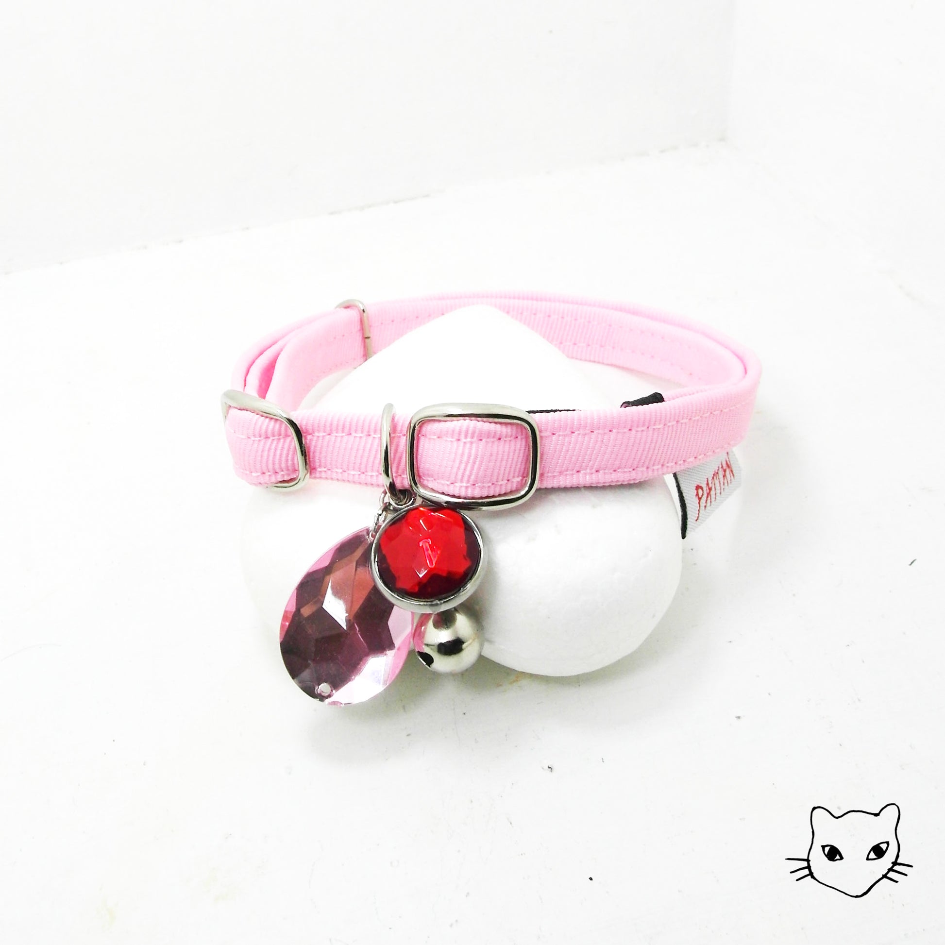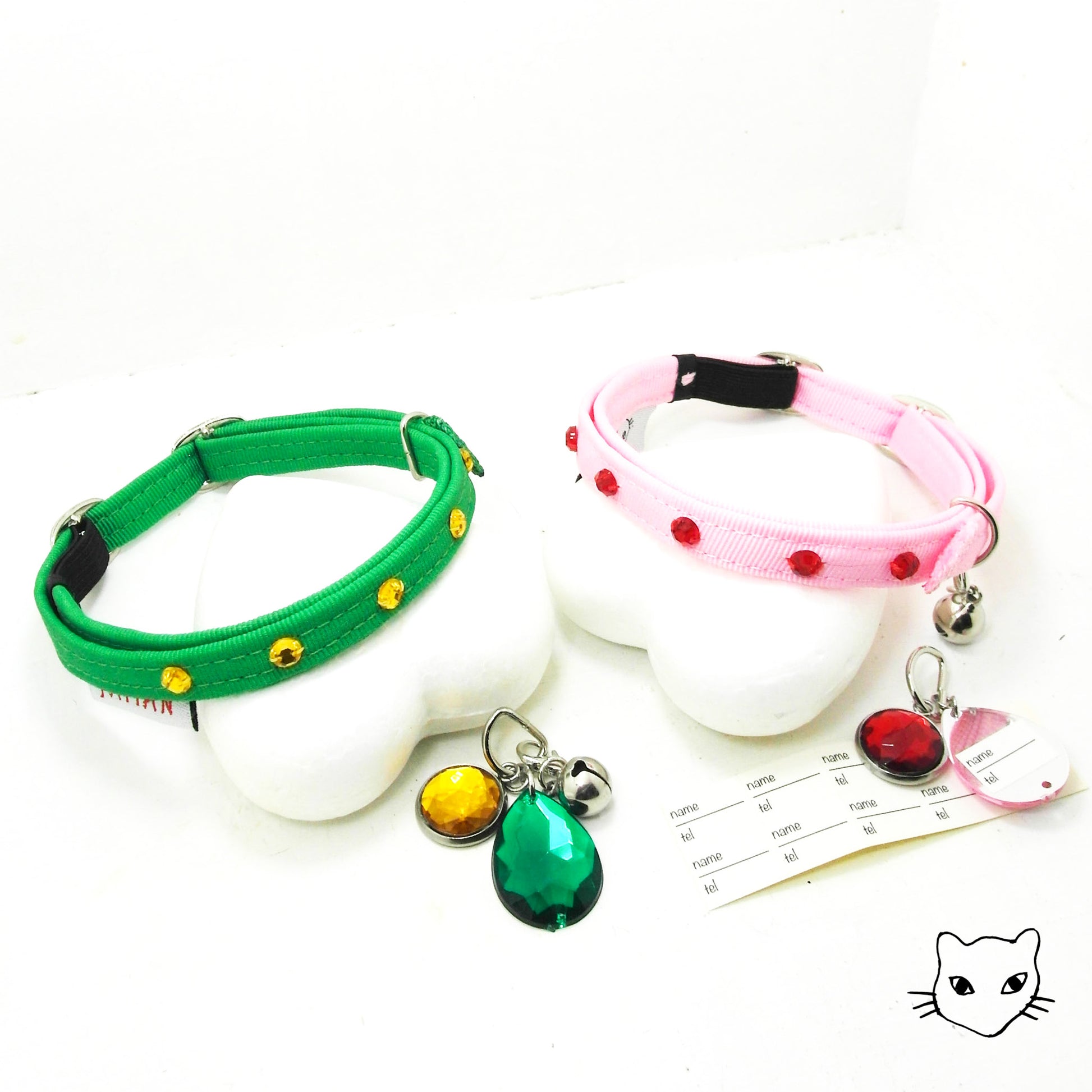 粉紅糖霜與祖爾雨林純色水鑽樣式安心名牌項圈,名牌背面可貼上內附的聯絡資訊貼紙,出門在外超放心。獨家彈性安心項圈設計,彈性繩受力自動變長好鬆脫,緊緻造型之外,更讓安心滿分。為貓咪量身定製的大小合適,美觀為上,更重要的是貓咪整天的舒適體驗。全項圈高品質 100% 手工裁切縫製,嚴選台灣優質緞帶,舒適的可調長度項圈,自由調整 20 ~ 50 cm,可一路陪伴各種大中小型貓的手工貓項圈。