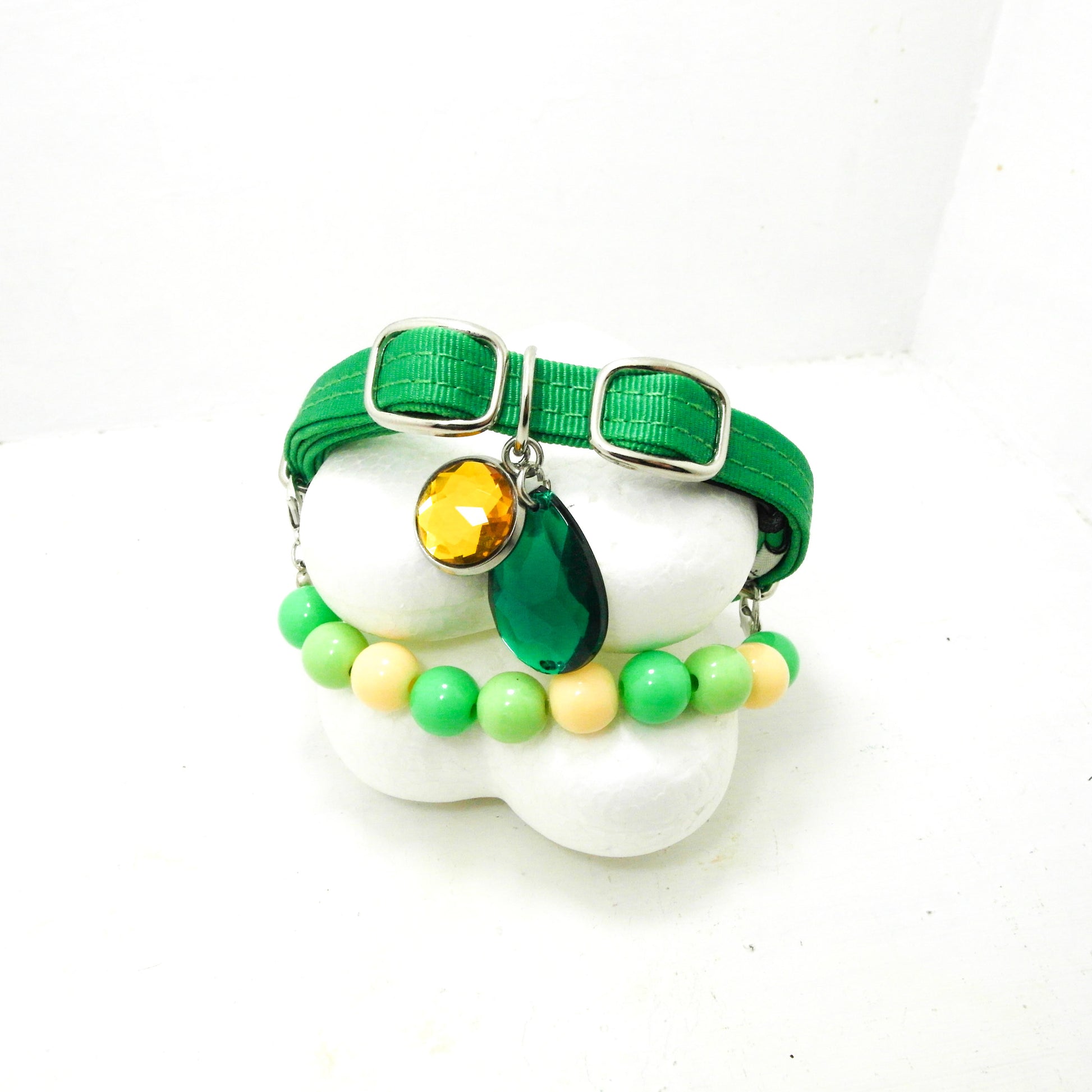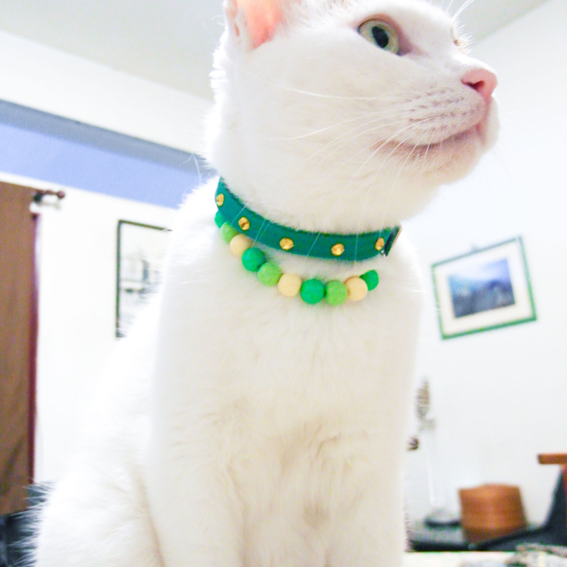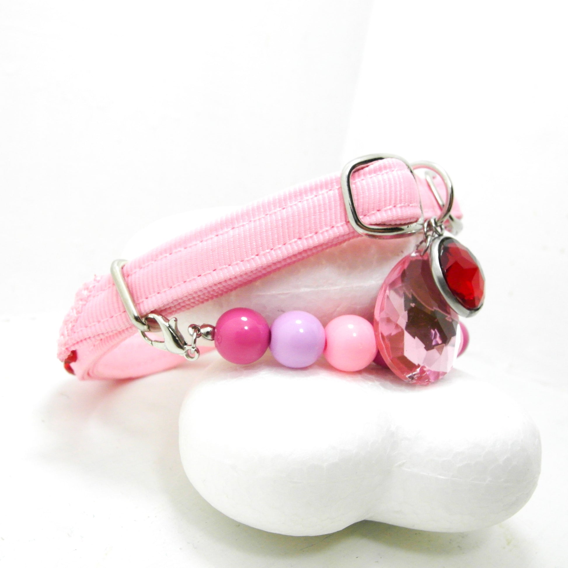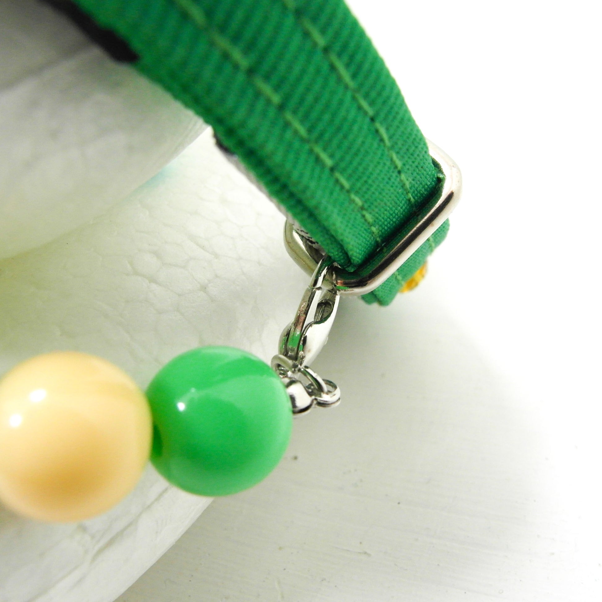 閃亮水鑽造型安心名牌,背面可貼上內附的聯絡資訊貼紙,好讓指引出回家的路。雙色甜美配色串珠項線,粉紅草莓與綠薄荷皆難以抗拒!獨家彈性安心項圈設計,彈性繩受力自動變長好鬆脫,緊緻造型之外,更讓安心滿分。為貓咪量身定製的大小合適,美觀為上,更重要的是貓咪整天的舒適體驗。全項圈高品質 100% 手工裁切縫製,嚴選台灣優質緞帶,舒適的可調長度項圈,自由調整 20 ~ 50 cm,可一路陪伴各種大中小型貓的手工貓項圈。