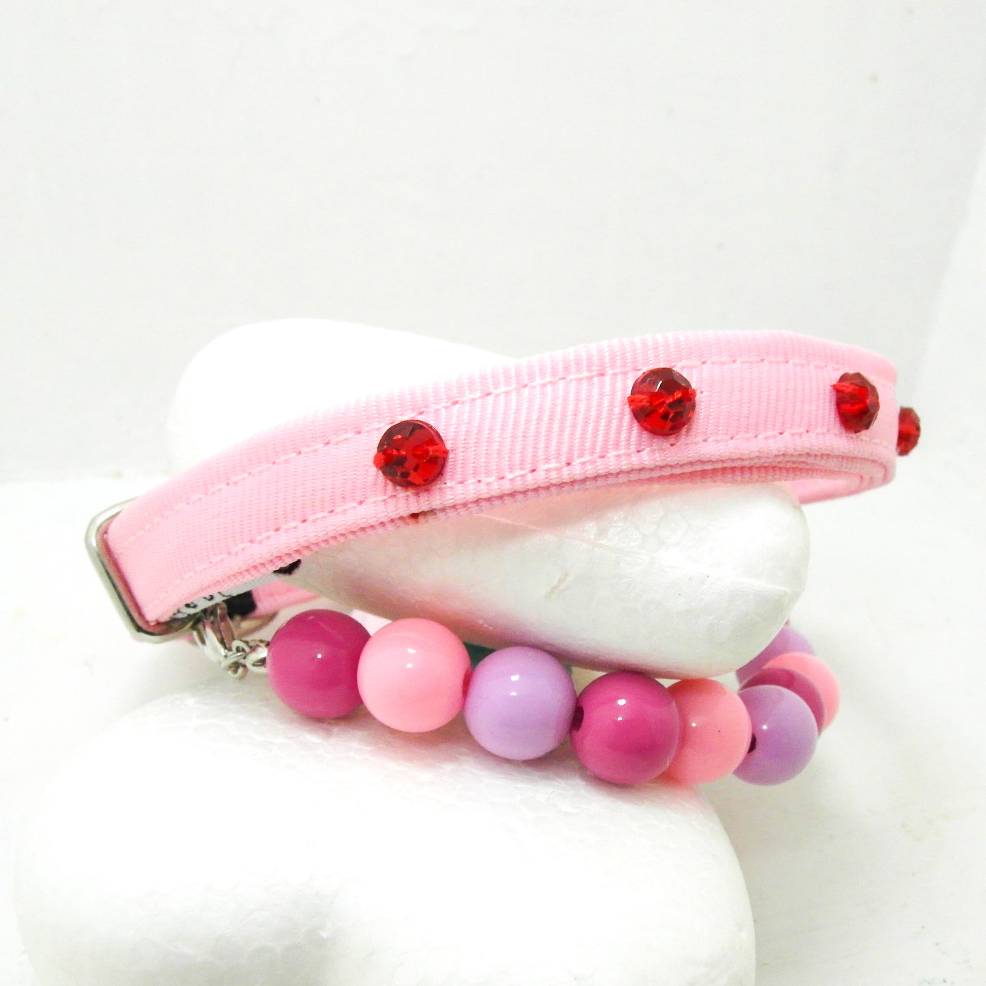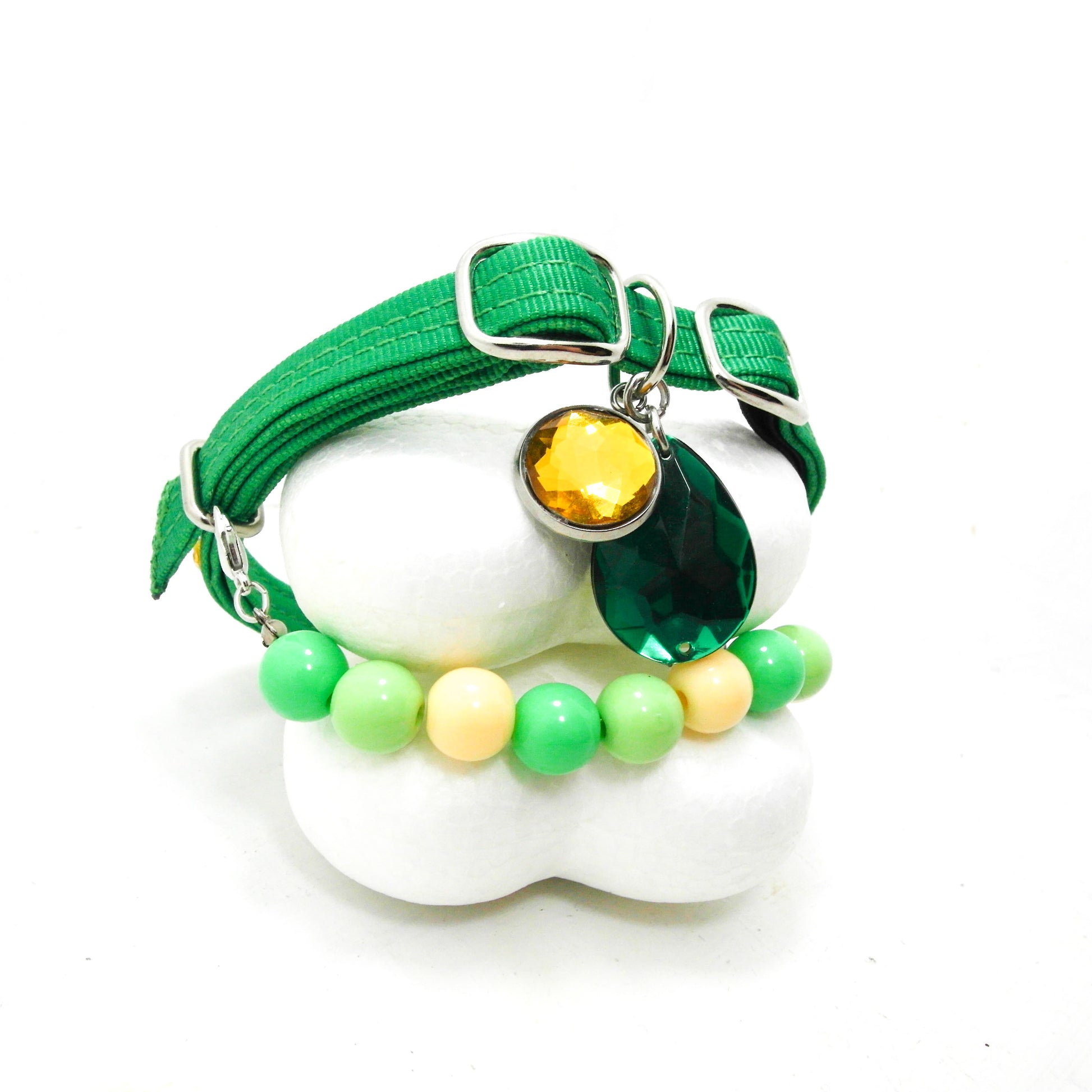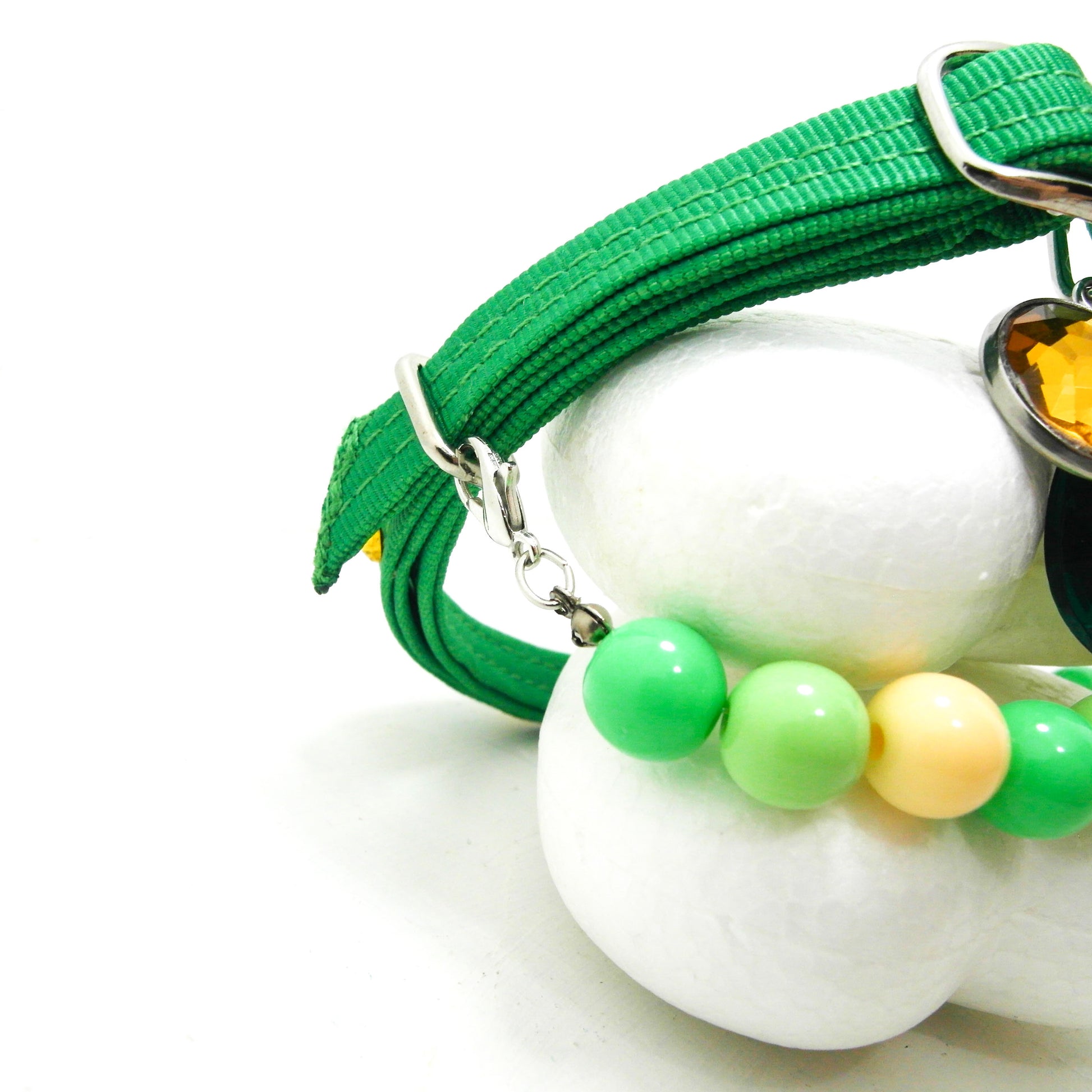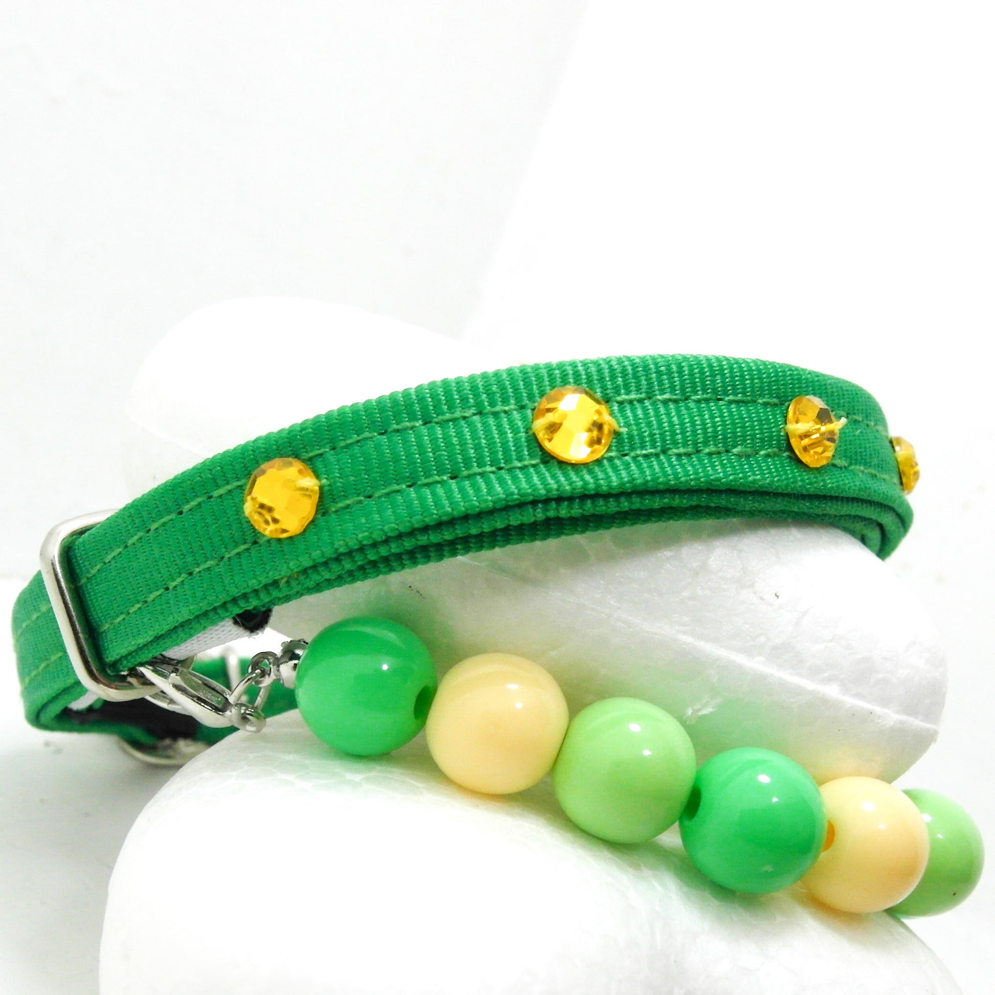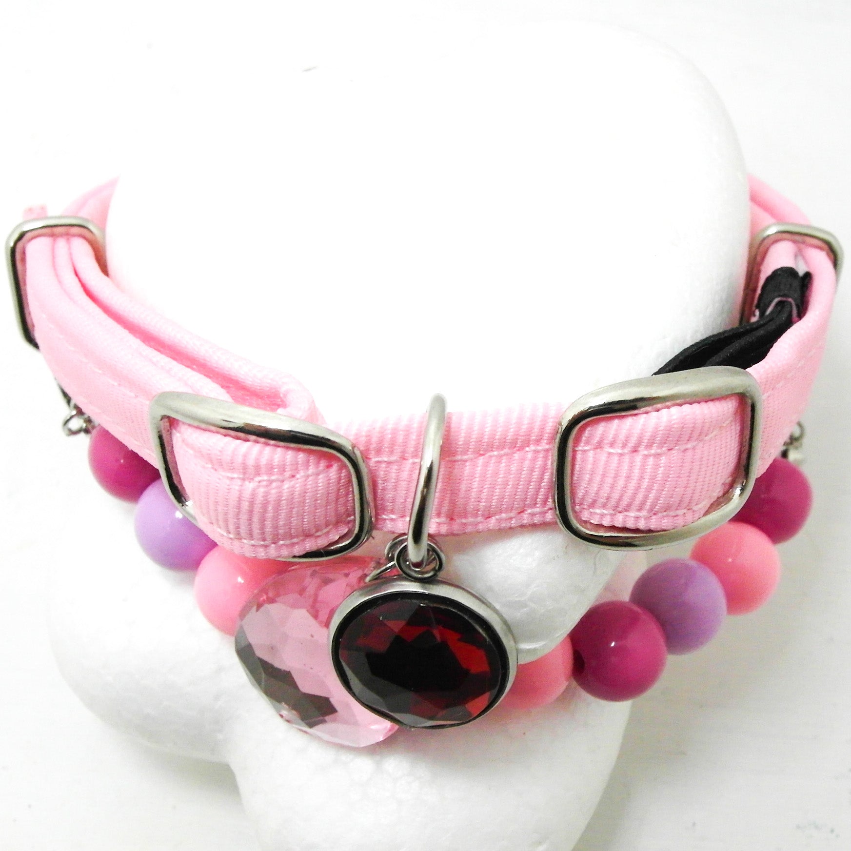 閃亮水鑽造型安心名牌,背面可貼上內附的聯絡資訊貼紙,好讓指引出回家的路。雙色甜美配色串珠項線,粉紅草莓與綠薄荷皆難以抗拒!獨家彈性安心項圈設計,彈性繩受力自動變長好鬆脫,緊緻造型之外,更讓安心滿分。為貓咪量身定製的大小合適,美觀為上,更重要的是貓咪整天的舒適體驗。全項圈高品質 100% 手工裁切縫製,嚴選台灣優質緞帶,舒適的可調長度項圈,自由調整 20 ~ 50 cm,可一路陪伴各種大中小型貓的手工貓項圈。