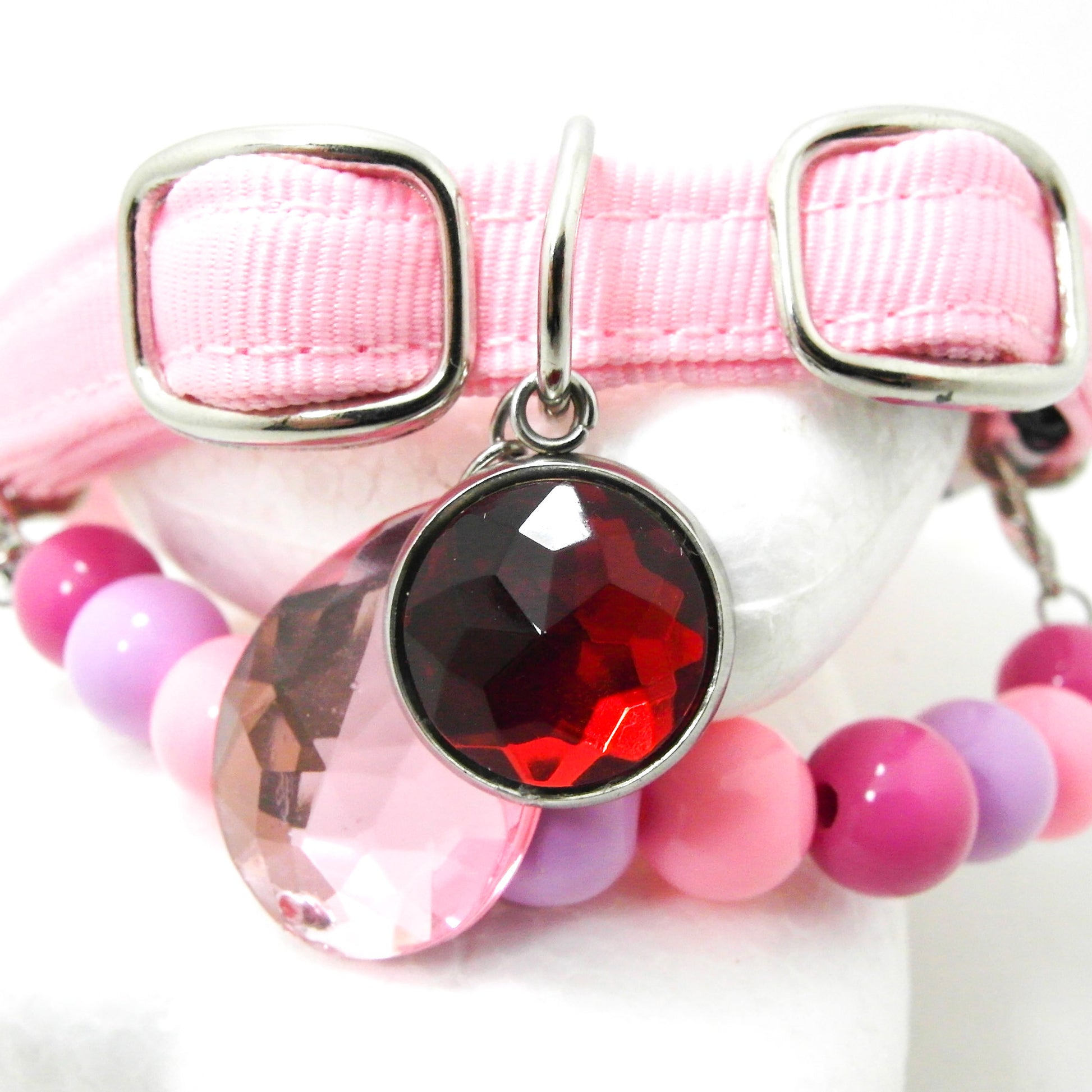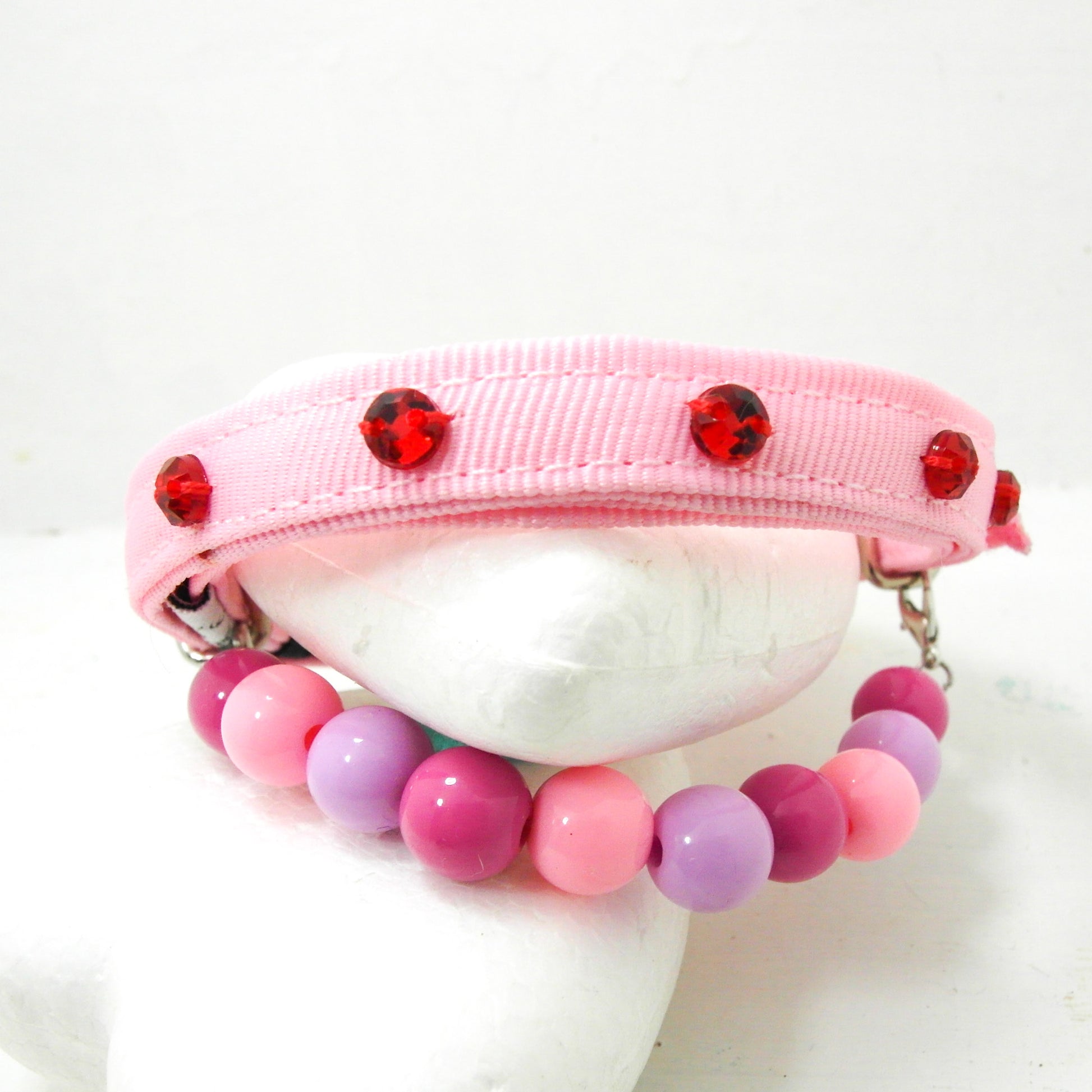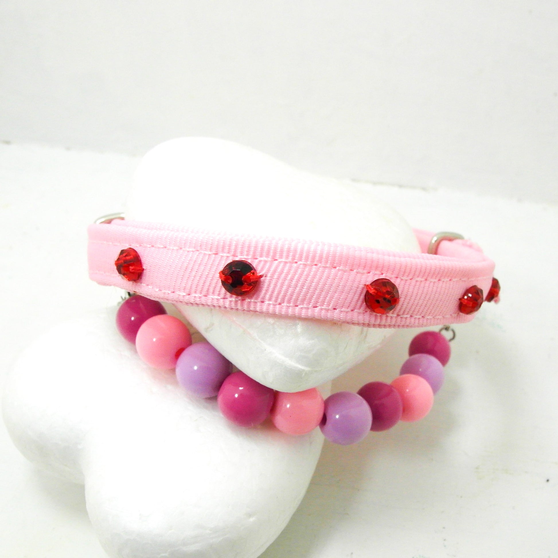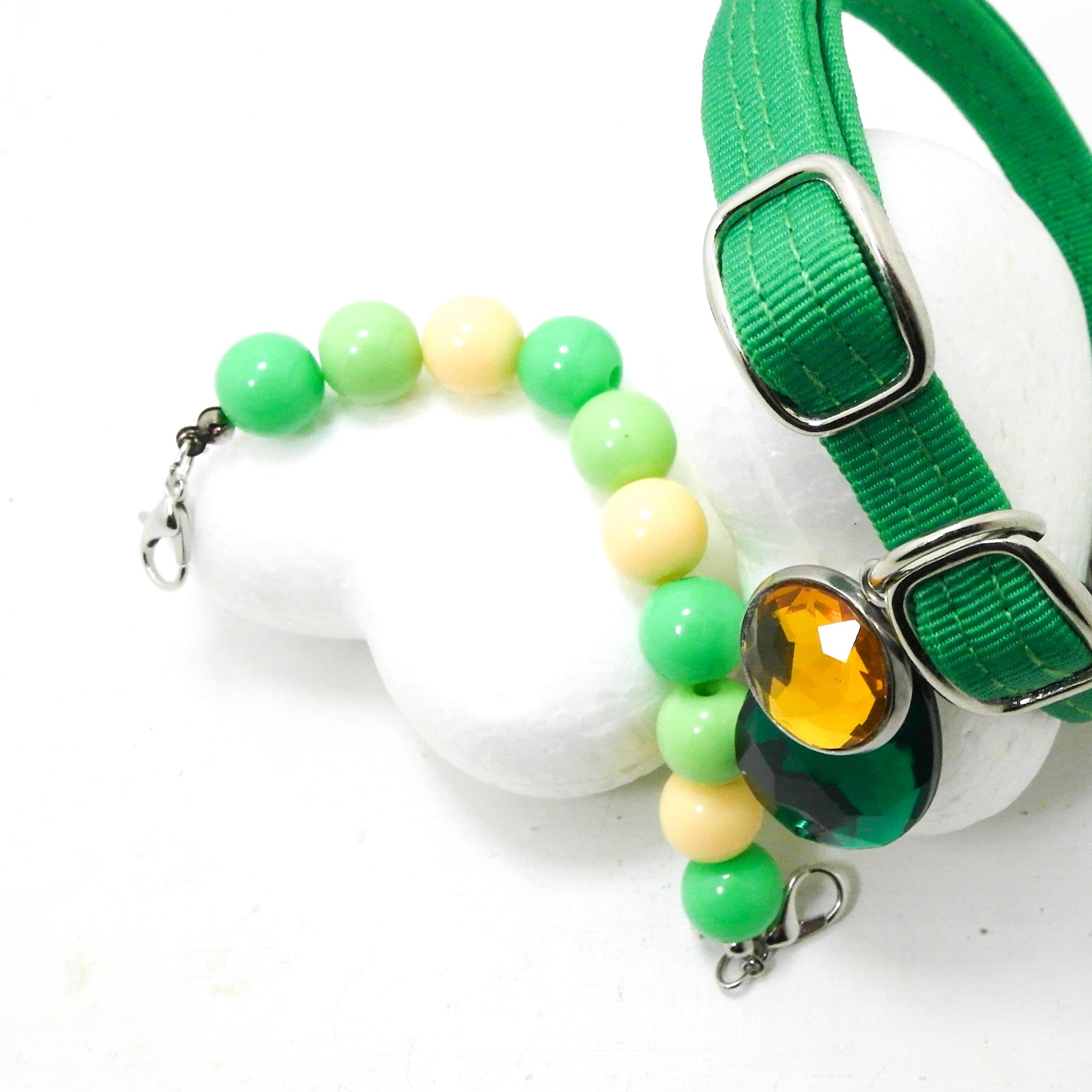 閃亮水鑽造型安心名牌,背面可貼上內附的聯絡資訊貼紙,好讓指引出回家的路。雙色甜美配色串珠項線,粉紅草莓與綠薄荷皆難以抗拒!獨家彈性安心項圈設計,彈性繩受力自動變長好鬆脫,緊緻造型之外,更讓安心滿分。為貓咪量身定製的大小合適,美觀為上,更重要的是貓咪整天的舒適體驗。全項圈高品質 100% 手工裁切縫製,嚴選台灣優質緞帶,舒適的可調長度項圈,自由調整 20 ~ 50 cm,可一路陪伴各種大中小型貓的手工貓項圈。